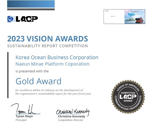 한국해양진흥공사가 발간한 ‘2023년 지속가능경영보고서’가 미국 ‘LACP Vision 어워즈’, ‘ARC 어워즈’에서 수상했다고 4일 밝혔다.