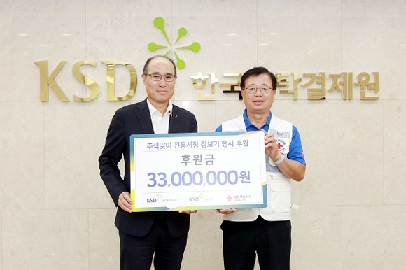 한국예탁결제원 KSD나눔재단이 지난 3일 서울사옥에서 대한적십자사 서울지사에 추석맞이 전통시장 장보기 후원금 3300만원을 전달했다고 밝혔다.