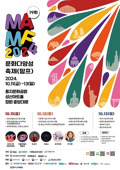 경남 창원시는 오는 10월 11~13일 용지문화공원, 성산아트홀 대강당, 중앙대로 일원에서 제19회 문화다양성 축제 MAMF(맘프)가 펼쳐진다고 9일 밝혔다.