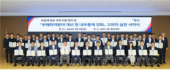 한국자산관리공사(캠코)가 9일 부산국제금융센터(BIFC) 본사 3층 캠코마루에서 ‘부패취약분야 개선 및 내부통제 강화를 위한 고위직 실천 서약식’을 개최했다고 밝혔다.