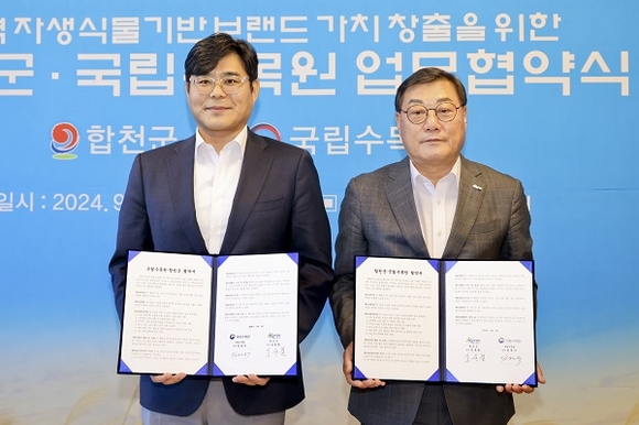 경남 합천군은 산림청 국립수목원과 9일 황매산수목원에서 식물유전자원의 전시·교육·보전을 위한 업무협약을 체결했다.
