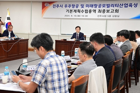 경남 진주시는 지난 10일 시청 5층 상황실에서 '진주시 우주항공 및 미래항공모빌리티 산업육성 기본계획 수립용역 최종보고회'를 가졌다.