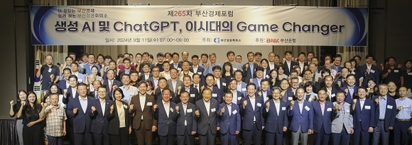부산상공회의소가 11일 오전 7시 부산롯데호텔에서 ‘Chat GPT와 생성 AI, 이 시대의 Game Changer’를 주제로 제265차 부산경제포럼을 개최했다고 밝혔다. 이번 포럼은 최근 주목받고 있는 인공지능(AI) 산업에 대한 심도 있는 논의의 장으로 마련됐다.