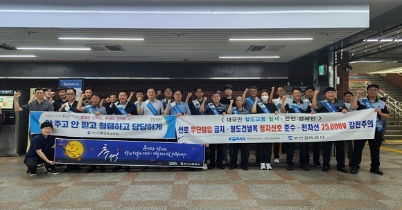 부산교통공사가 지난 11일 한국철도공사 부산경남본부와 함께 도시철도 부산역과 KTX 부산역에서 추석을 맞아 부산을 방문하는 철도 이용 고객 및 시민을 대상으로 안전사고 예방 캠페인을 시행했다고 밝혔다.