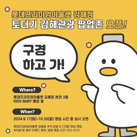 경남 김해시는 '2024 김해방문의 해'의 홍보를 위한 특화사업으로 추석 연휴기간인 오는 14일부터 한 달간 롯데프리미엄아울렛 김해점에 '토더기 김해관광 팝업존'을 운영한다고 13일 밝혔다.