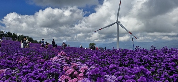 경남 거창군 '제4회 감악산 꽃&별 여행' 행사가 지난 13일부터 시작돼 보라색 아스타 국화꽃을 보려는 많은 관광객이 추석 연휴 동안 문전성시를 이뤘다.
