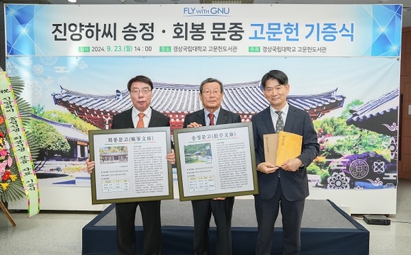 경상국립대학교 고문헌도서관은 23일 오후 2시 가좌캠퍼스 고문헌도서관에서 ‘진양하씨 송정·회봉 문중 고문헌 기증식 및 전시 개관식’을 개최했다고 밝혔다.