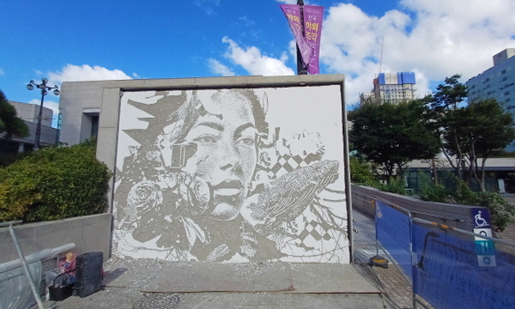 빌스 작가는 부드러우면서 강인한 생명력이 느껴지는 여성의 얼굴과 장미꽃, 그리고 역동적인 고래의 모습을 통해 지속가능한 문화도시 울산의 미래를 염원하는 울산 시민의 마음을 담아냈다.