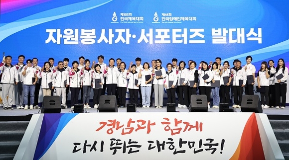 제105회 전국체전이 보름 앞으로 다가온 가운데, 경남도는 26일 김해실내체육관에서 2024년 전국체전 자원봉사자 및 서포터즈 발대식을 개최하고 전국체육대회의 성공을 다짐했다.