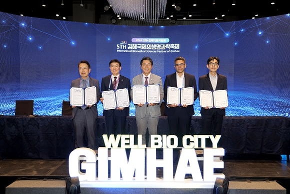 김해의생명산업진흥원은 27일 김해의생명과학축제에서 이란 의료기기협회(IMEDS)와 글로컬 대학인 인제대학교, 가야대학교, 김해대학교와 의료기기 산업 발전을 위한 5자 간 업무협약(MOU)을 체결했다.