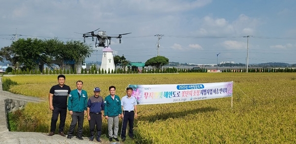 지난 27일 용현면 금문리 234번 외 17필지 일원에서 관내 농업인, 관계 공무원 등 20여 명이 참석한 가운데 드론을 활용한 자운영 파종 연시회를 가진 것.