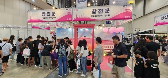 합천군은 황매산 억새축제, 신소양체육공원의 핑크뮬리 군락지, 한우축제, 대장경기록문화축제 등을 중점적으로 홍보하며, 핑크뮬리 군락지를 배경으로 한 부스를 꾸몄다. 핑크뮬리와 함께 핑크 대형문과 벤치를 설치해 방문객들의 큰 호응을 얻었으며, 방문객들은 핑크뮬리 군락지를 배경으로 사진 촬영을 즐겼다. 또 천연 이끼인 스칸디아모스를 활용한 화분 만들기 체험과 팔만대장경 반야심경 인경체험도 마련하여 많은 호응을 받았다.
