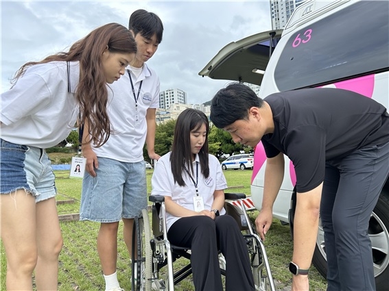 부산시설공단의 제14기 글로벌 대학생홍보단 영비스코가 최근 장애인 특별교통수단인 두리발을 체험하는 뜻깊은 시간을 가졌다. 이번 행사는 지난 7월 9일 발대식 이후 본격적으로 활동을 시작한 홍보단이 다양한 사회공헌 활동의 일환으로 진행됐다.