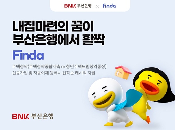BNK부산은행이 핀테크 업체인 ‘핀다(finda)’와 주택청약종합저축과 청년주택드림청약통장 신규 가입 이벤트를 오는 11월 8일까지 실시한다고 2일 밝혔다.