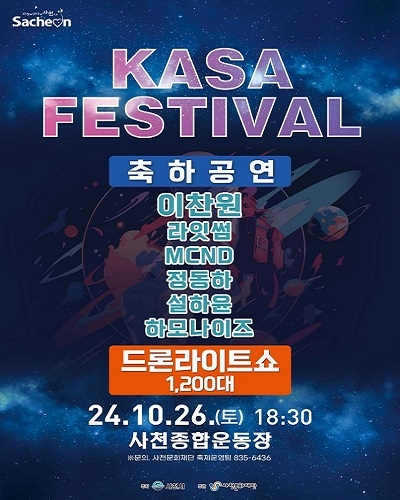 사천문화재단은 올해 개청한 우주항공청의 도시 사천에서 'KASA(Korea Aerospace Administration) 페스티벌'을 오는 26일 개최한다고 8일 밝혔다.