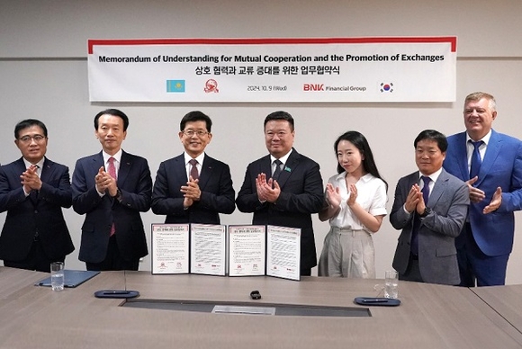 BNK금융그룹이 지난 9일 카자흐스탄 알마티 신라인그룹 본사에서 신라인(Shin-Line)그룹과 포괄적 협력을 위한 업무협약을 체결했다고 밝혔다.