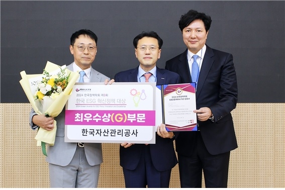 한국자산관리공사(캠코)가 11일 한국과학기술회관에서 개최된 '2024년 제3회 한국 ESG 혁신정책 대상' 시상식에서 지배구조(G) 분야 ‘최우수상’을 수상했다고 밝혔다.