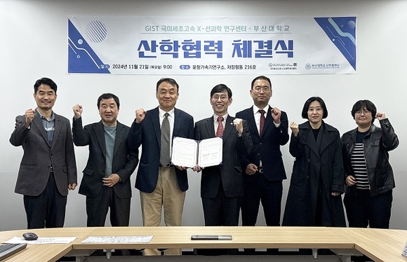 부산대학교 산학협력단과 광주과학기술원 극미세 초고속 X-선 과학 연구센터(C-AXS)는 지난 21일 포항가속기연구소 저장링동에서 보유 기술·인력 교류를 통한 경쟁력 제고 및 유기적인 협력체계 구축을 위한 업무협약을 체결했다고 25일 밝혔다.