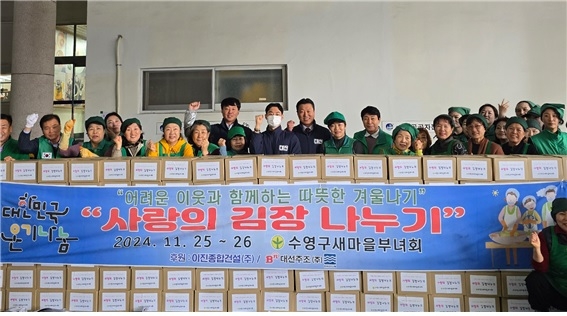 수영구새마을부녀회 김숙희 회장은 “부산 대표 향토기업 대선주조의 따뜻한 마음이 담긴 김치는 소외 이웃들에게 희망을 전하는 선물이 될 것”이라며 고마움을 전했다.