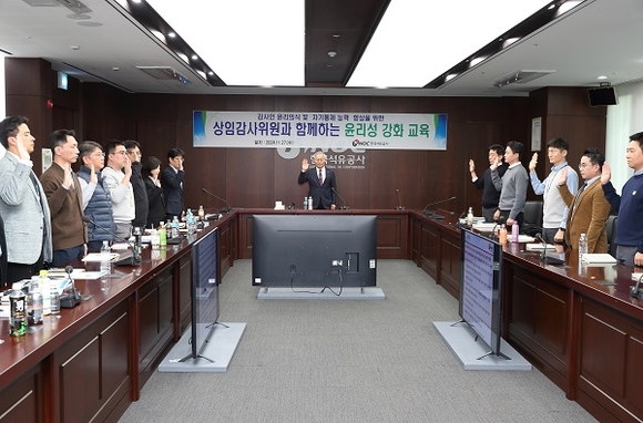 한국석유공사는 지난 27일 울산 본사에서 박공우 상임감사위원 주관으로 감사인의 윤리성 강화교육을 하고, `감사인 행동기준 준수 및 갑질 근절 서약식'을 개최했다고 28일 밝혔다.