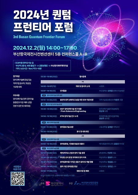부산정보산업진흥원이 오는 12월 2일 오후 2시 부산항국제전시컨벤션센터(5층 컨퍼런스홀)에서 ‘제3회 부산시 퀀텀 프런티어 포럼’을 개최한다고 밝혔다.