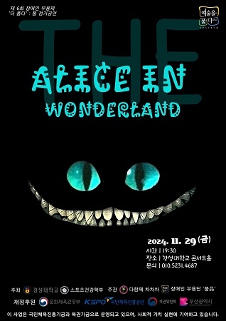 경성대학교는 장애인 무용단 ‘품(品)’이 오는 29일 19시 30분부터 경성대학교 콘서트홀에서 ‘제6회 정기공연 [더 품다-The 이상한 나라의 앨리스]’를 개최한다고 28일 밝혔다.