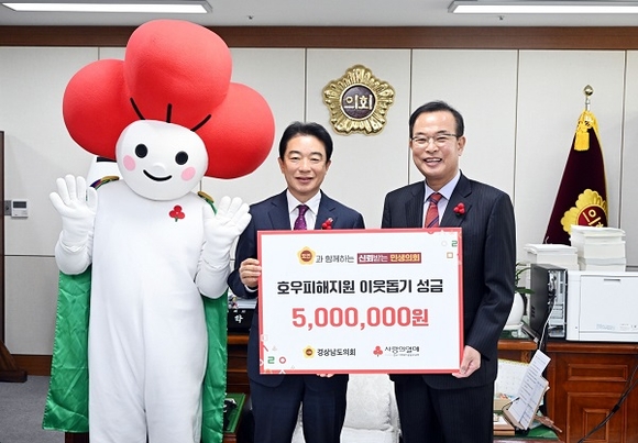 이날 행사에 앞서 최학범 의장은 지난 9월 경남지역에 발생한 호우피해에 대한 재난구호금 500만원을 대한민국시도의회의장협의회로부터 지원받아 경남사회복지공동모금회에 전달했다.