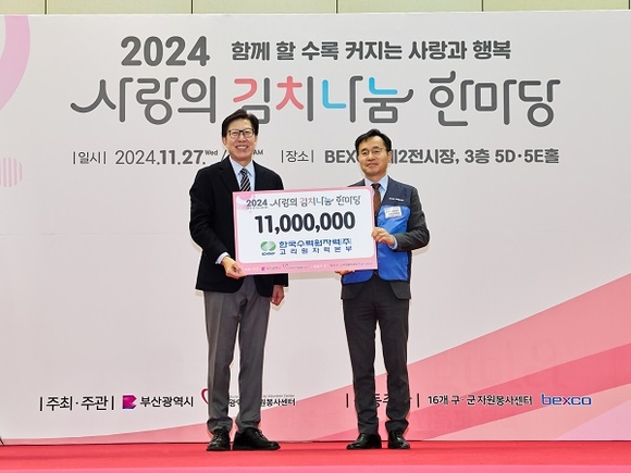 한국수력원자력 고리원자력본부는 지난 27일 부산 BEXCO 제2전시장에서 진행된 ‘2024 사랑의 김치나눔 한마당’에 참여해 1100만 원을 후원했다고 29일 밝혔다.