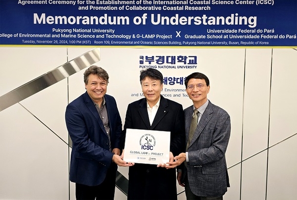 국립부경대학교는 환경해양대학 이태윤 학장과 G-램프사업단 김영석 단장이 브라질 파라연방대학교 대학원 Marcelo Cancela Lisboa Cohen 교수와 지난 26일 국립부경대 환경해양대학 회의실에서 업무협약을 체결했다고 29일 밝혔다.