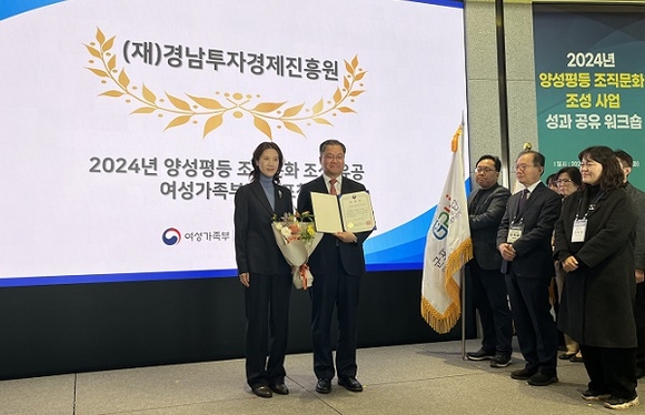 경남투자경제진흥원은 여성가족부에서 주관한 양성평등 조직문화 조성사업에 참여하고, 양성평등 조직문화 조성에 이바지한 성과를 인정받아 장관 표창을 수상했다고 2일 밝혔다.