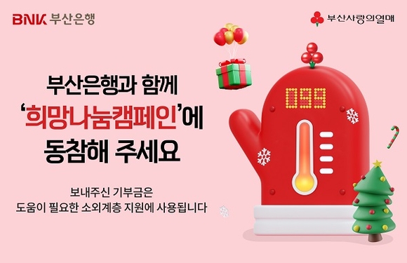 BNK부산은행이 소외되고 고통받는 어려운 이웃들을 위한 ‘희망2025 나눔캠페인’에 참여해 영업점 모금함과 모바일 모금함을 동시에 운영한다고 3일 밝혔다.