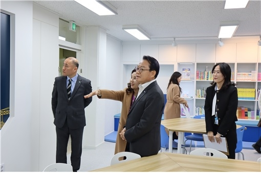 2일 사상구 백양종합사회복지관에서 열린 ‘해양 Dream Dock 1호 개소 행사’에서 안병길 사장이 시설을 둘러보고 있다.(사진=해진공 제공)