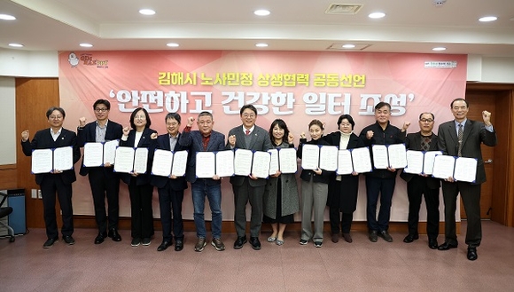 김해시 노사민정협의회는 지난 2일 오후 4시 시청 비상대책회의실에서 정기회의를 열어 '상생 협력으로 안전하고 건강한 일터 조성'을 위한 노사민정 공동선언문을 채택했다.