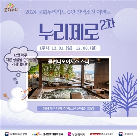 부산문화재단이 부산지역 문화누리카드 이용자를 대상으로 하는 잔액소진 <누리 제로!> 2차 이벤트를 오는 29일까지 진행한다고 밝혔다.