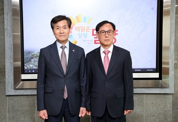 안병구 밀양시장이 지난 3일 시청 시장실에서 밀양시시설관리공단 김경민 신임 이사장에게 임명장을 수여했다. 김 이사장은 별도 취임식 없이 공단 주요 업무를 보고받고 본격적인 업무를 시작했다.