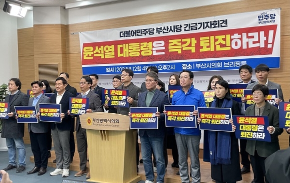 더불어민주당 부산시당이 윤석열 대통령의 비상계엄 선포를 "대한민국을 무너뜨리는 민주주의 폭거"로 규정하며 즉각적인 퇴진을 강력히 요구했다.