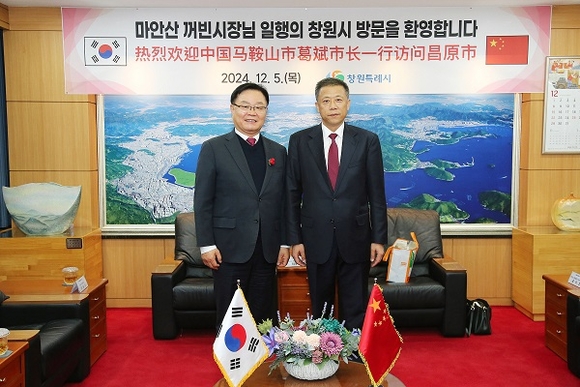 경남 창원시는 지난 5일 꺼빈 시장 등 중국 안휘성 마안산시 대표단이 시청을 방문해 국제자매도시 30주년에 따른 상호 우의를 확인하고 경제·문화 등 다양한 협력 방안에 대한 의견을 교환했다고 밝혔다.