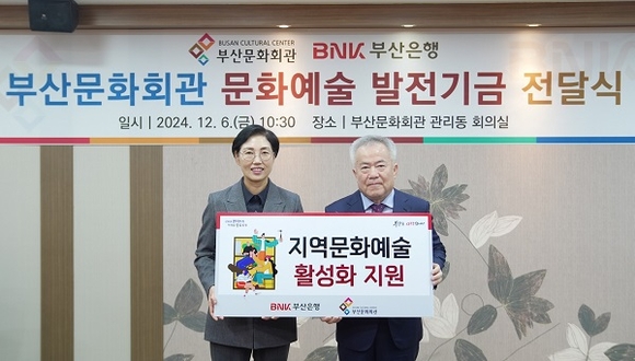 BNK부산은행이 6일 부산문화회관에서 지역 문화예술 활성화를 위한 후원금 3000만원을 부산문화회관에 전달했다고 밝혔다.
