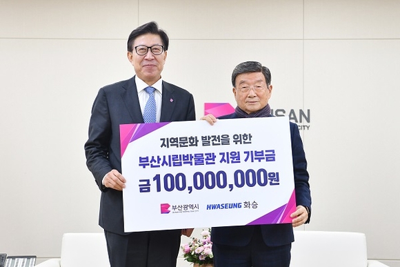 이날 화승이 전달한 기부금 1억 원은 엘이디(LED) 전광판 설치 등 전액 부산박물관의 전시·홍보사업 지원에 사용될 예정이다.