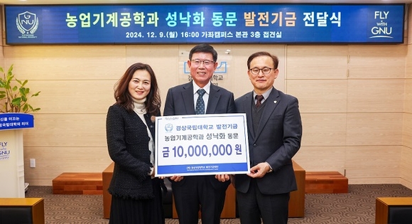 경상국립대학교는 경기도 고양시에 거주하는 성낙화 동문(농업기계공학과 82학번)이 대학발전기금 1,000만 원을 기부했다고 9일 밝혔다.