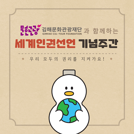 김해문화관광재단이 제76주년 세계인권선언 기념주간을 맞아 직원들과 시민들의 인권 의식을 높이고 인권의 중요성을 일상에서 실천할 수 있도록 다양한 행사를 펼친다고 10일 밝혔다.
