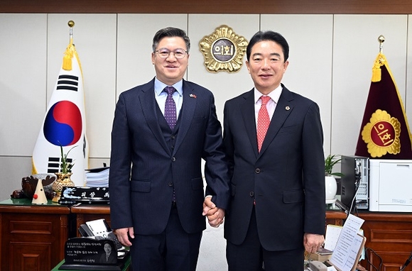 경남도의회 최학범 의장은 10일 의장실에서 주부산 중국총영사관 진일표 총영사, 홍서전 정무과장을 만나 중국과 도의회의 우호교류 협력방안에 대한 다양한 의견을 나눴다.