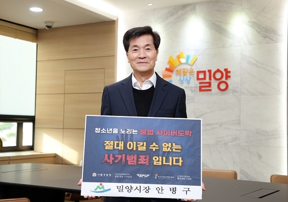안병구 밀양시장이 11일 시청 시장실에서 청소년 도박 문제의 심각성을 알리기 위한 '청소년 도박 근절 릴레이 챌린지'에 동참했다.