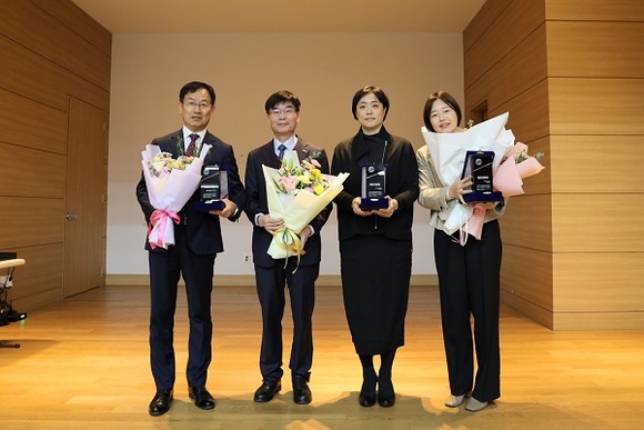 (왼쪽부터)한반도공룡발자국화석관 대표 한영대 국장, 국립부산과학관 송삼종 관장, LG디스커버리랩 부산 이은정, 의령곤충생태학습관 김미혜.(사진=부산과학관 제공)