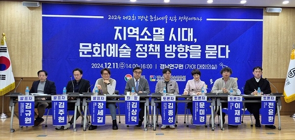 경남문화예술진흥원은 지난 11일 경남연구원 가야 대회의실에서 ‘지역소멸 시대, 문화예술 정책 방향을 묻다’를 주제로 한 정책세미나를 가졌다.