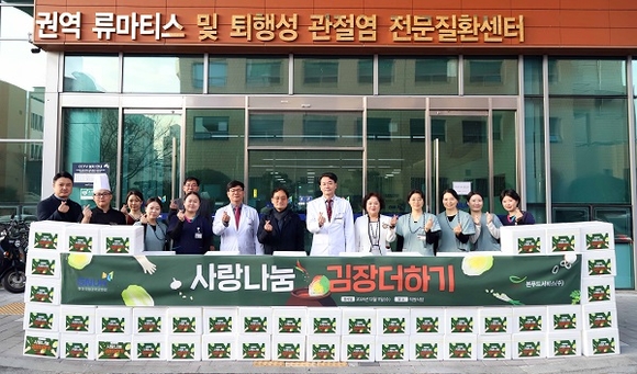 안성기 병원장은 “김장을 준비하는 데 어려움을 겪는 이웃들에게 사랑나눔 김장 김치가 조금이나마 보탬이 되길 바란다”라며 “앞으로도 ESG 경영 실천을 위해 지역사회에 소외되는 이웃이 없도록 상생의 사회공헌 활동을 적극 실행하겠다”라고 전했다.