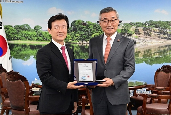 진주시는 지난 11일 시청 기업인의 방에서 김상문 인광그룹 회장에게 '진주시 명예시민증'을 수여했다고 밝혔다.