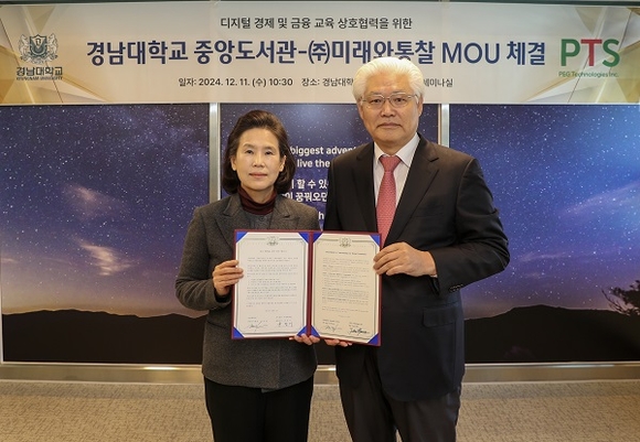 경남대학교 중앙도서관은 지난 11일 기업분석 IT 플랫폼 선도기업 미래와통찰과 ‘디지털 경제 및 금융 교육 강화를 위한 업무협약’을 체결했다고 12일 밝혔다.