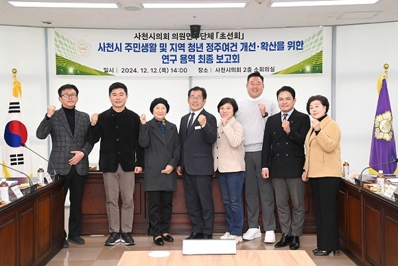 사천시의회 의원연구단체 '초선회'는 지난 12일 사천시 주민생활 및 지역 청년 정주여건 개선·확산 연구용역' 최종 결과보고회를 가졌다.