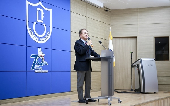이관세 극동문제연구소장이 특강을 하고 있다. (사진=경남대 제공)